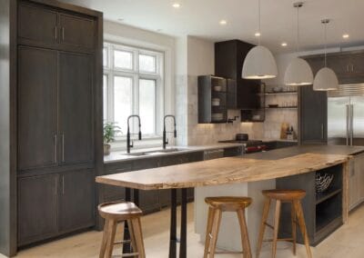 - Showstopping custom-designed kitchen island made of Spalted Maple and zinc, reminiscent of a hand-hewn boat.